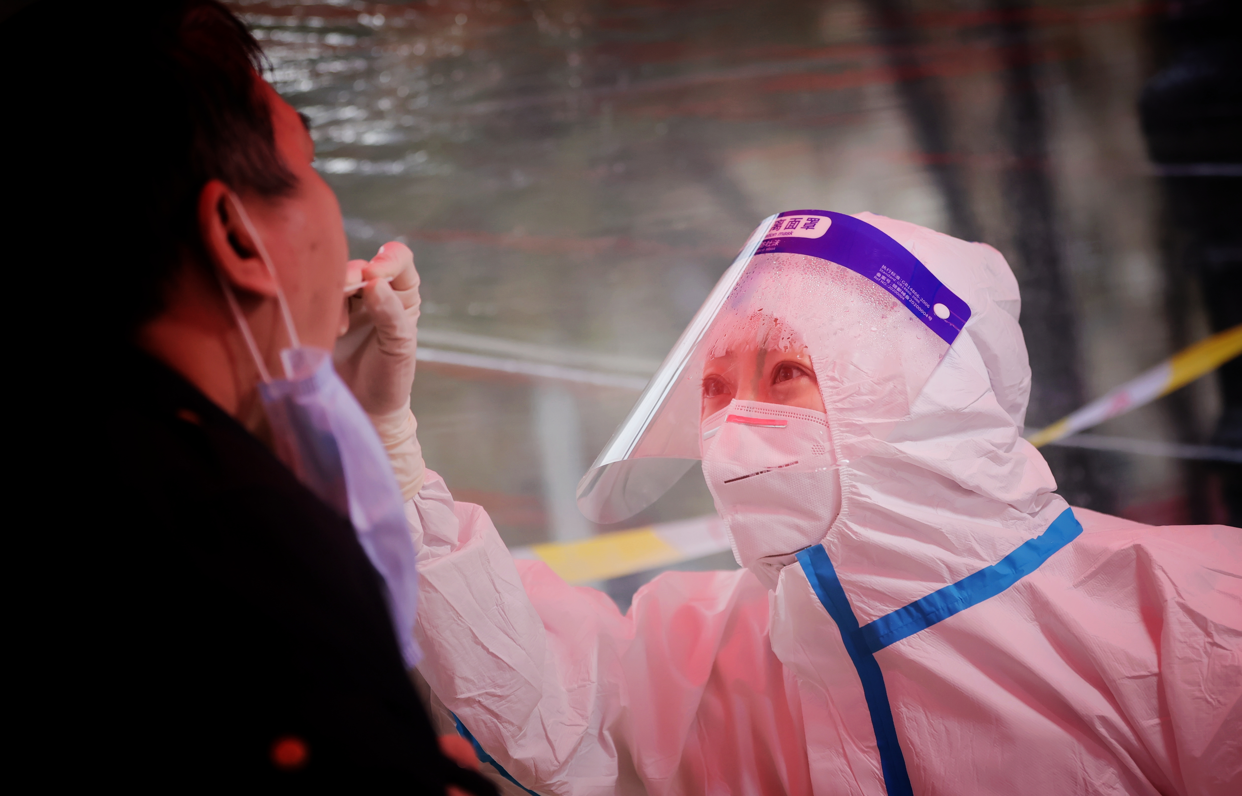 哈爾濱市第一人民醫(yī)院的醫(yī)護(hù)人員在核酸檢測取樣