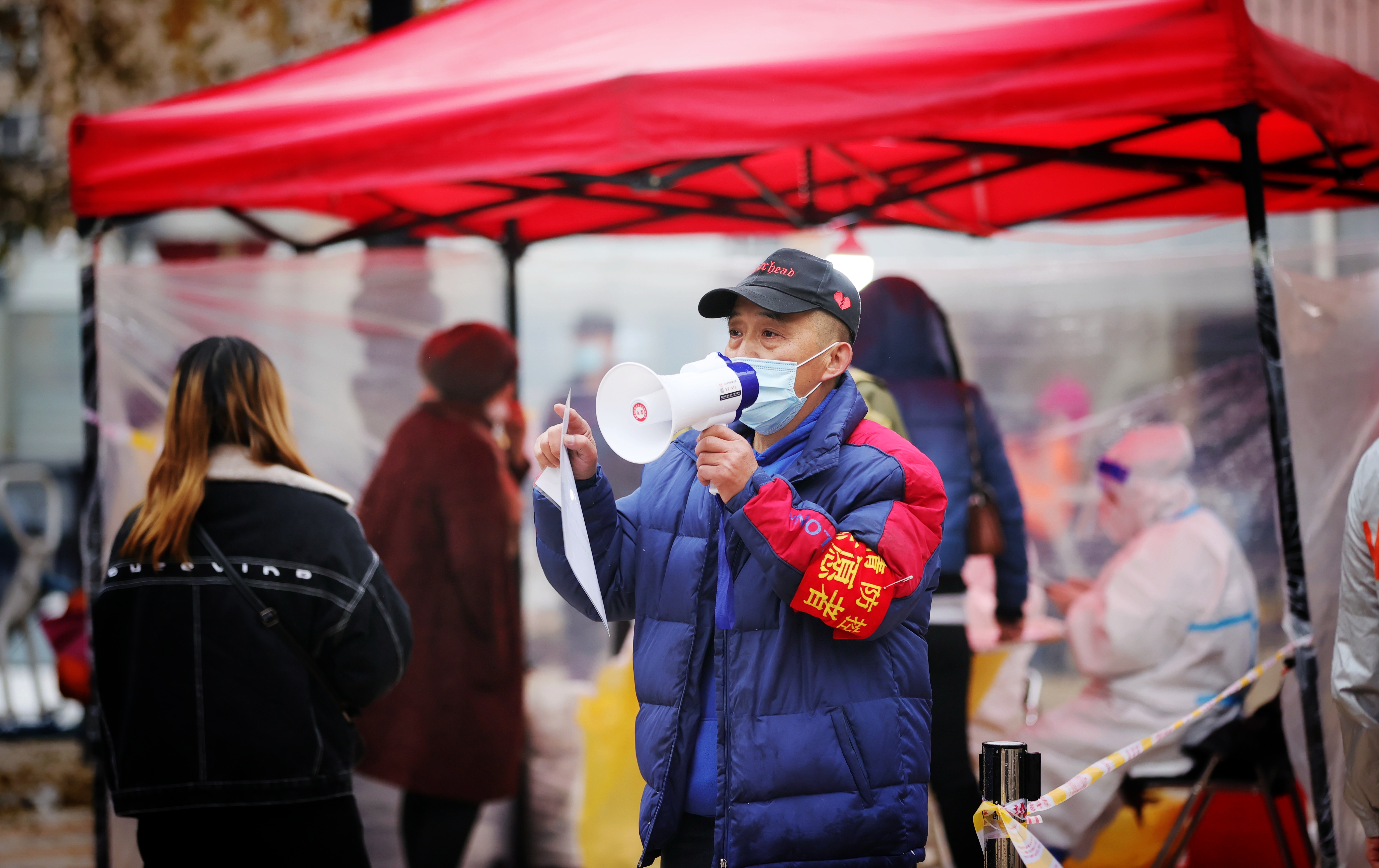 在埃德蒙頓路祥泰人家小區(qū)廣場核酸檢測取樣點(diǎn),轄區(qū)居民響應(yīng)政府號(hào)召,有序冒雨排隊(duì)等待核酸檢測取樣。附近的商家給工作人員送來燒好的熱水,感謝這些在冰雨中無私奉獻(xiàn)的工作人員。