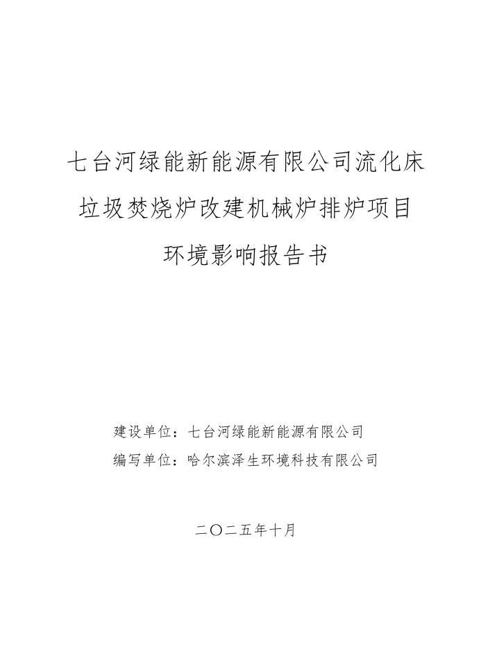 七臺(tái)河綠能新能源有限公司流化床垃圾焚燒爐改建機(jī)械爐排爐項(xiàng)目環(huán)境影響報(bào)告書報(bào)批前公示.pdf